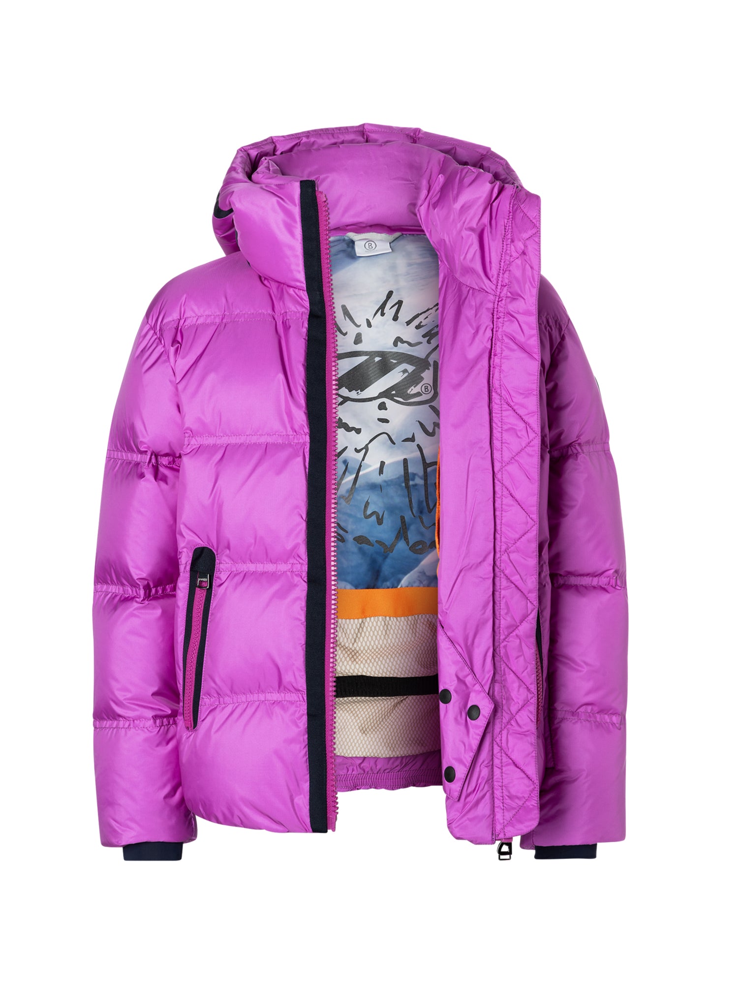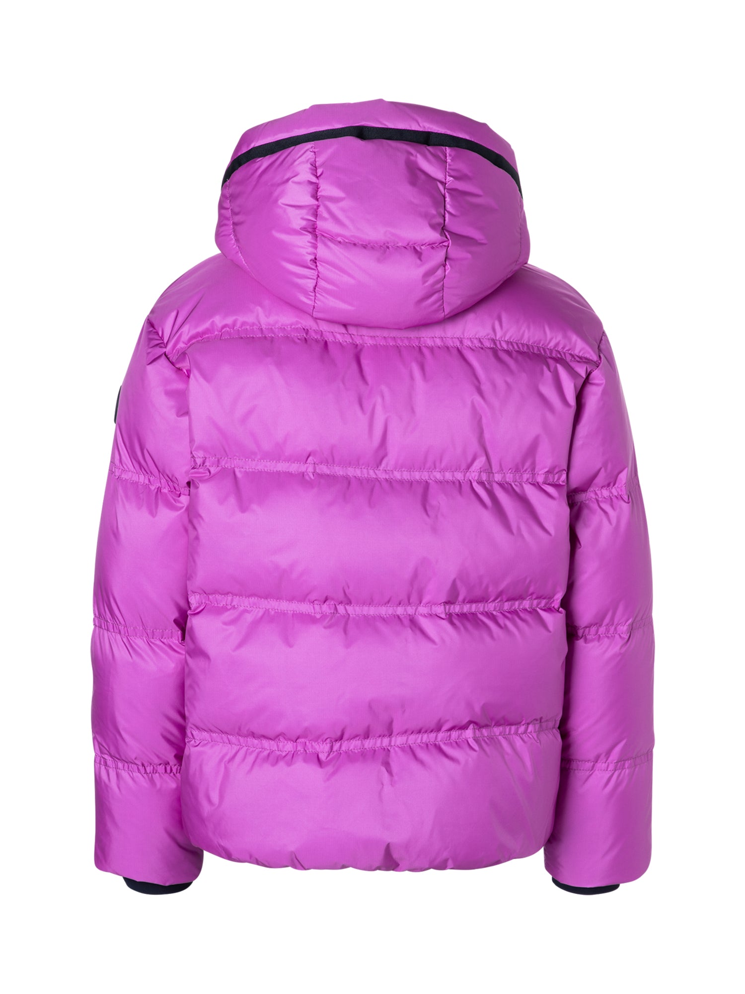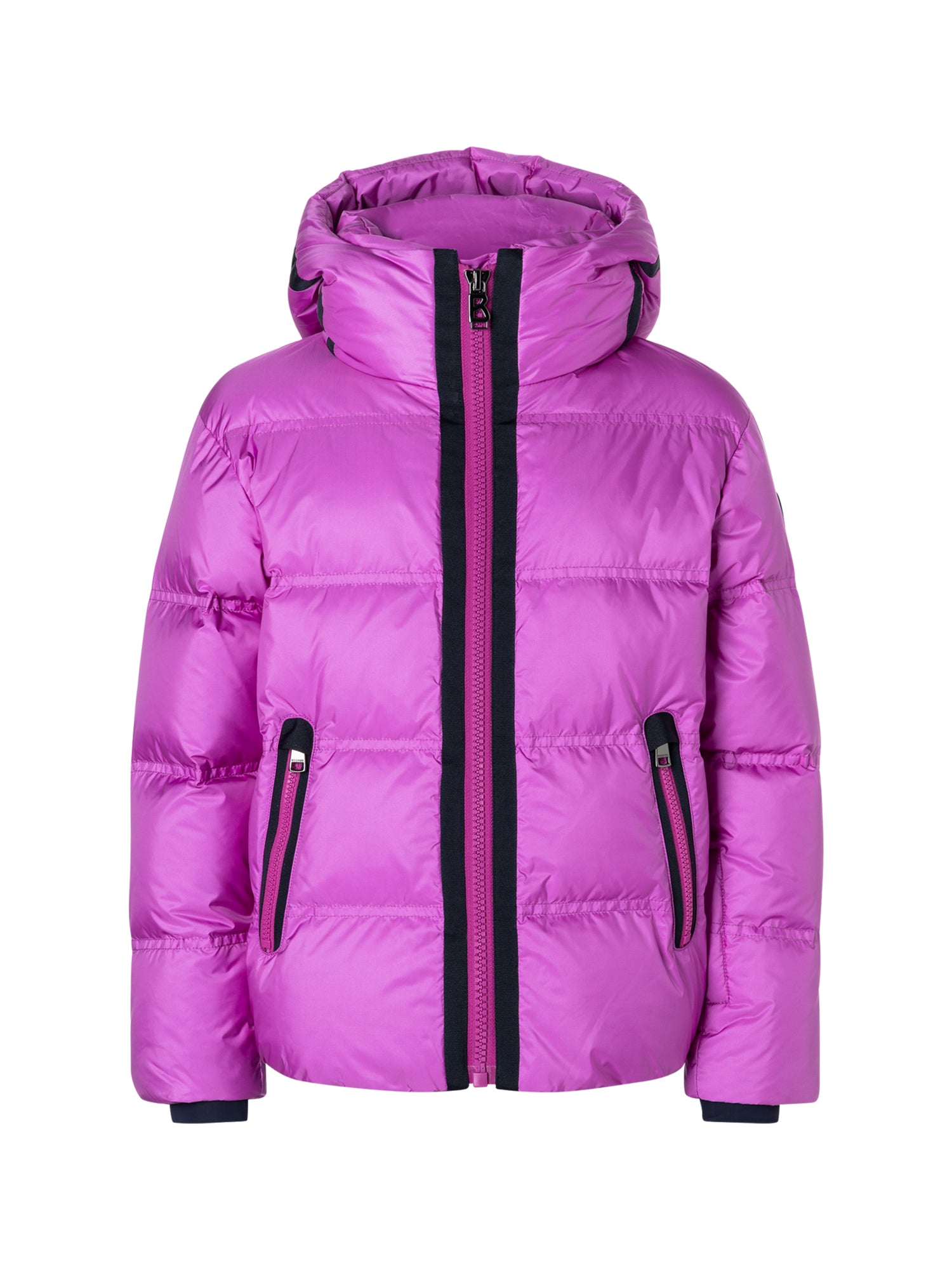 The Krissi down ski jacket for kids is a modern companion on the slopes. The functional style is highlighted by nylon with waterproof and breathable properties and an inner snow skirt. The mix of duck down and technical fibers ensures warmth. The adjustable hem rounds off the piece comfortably.