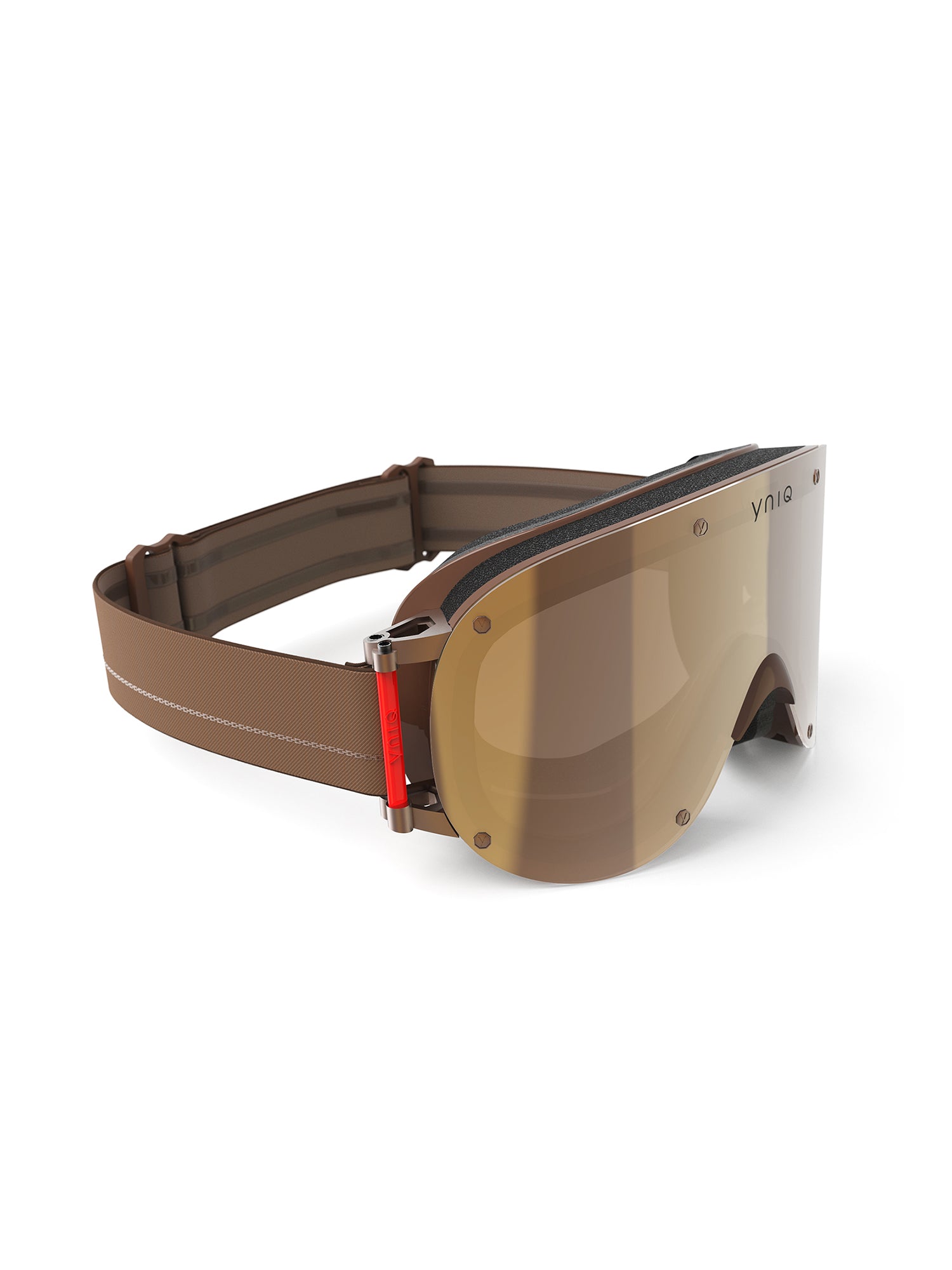 The Model Four is a masterpiece born from marrying minimalist design principles with techniques from high performance engineering. The result is an elegant ski goggle with refined metal hardware and rivets that take inspiration from luxury timepieces. Wrapped in a sleek ultra-luxurious goggle, experience expanded vision through our sophisticated PVT tri-lens technology and allow yourself to be immersed in an elevated mountain experience.