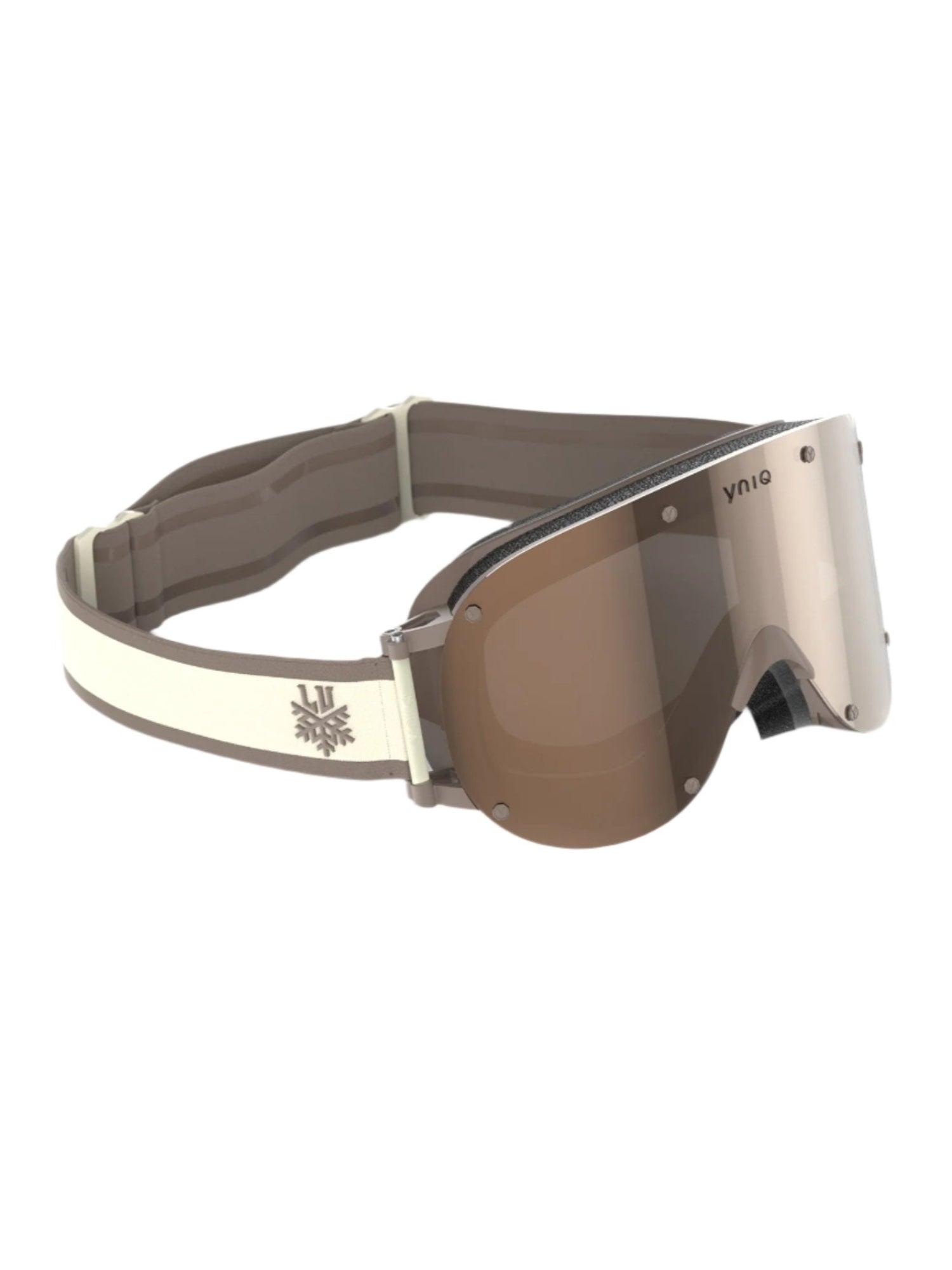 The Model Four is a masterpiece born from marrying minimalist design principles with techniques from high performance engineering. The result is an elegant ski goggle with refined metal hardware and rivets that take inspiration from luxury timepieces. Wrapped in a sleek ultra-luxurious goggle, experience expanded vision through our sophisticated PVT tri-lens technology and allow yourself to be immersed in an elevated mountain experience.