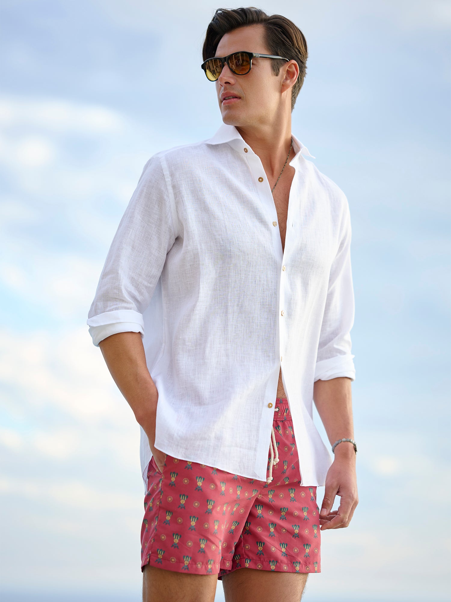 Easily dressed up or down, the Elba Shirt is a must-have for your summer wardrobe. Made by hand in Italy from lightweight linen, it offers a blend of style and versatility, making it perfect for a variety of occasions.