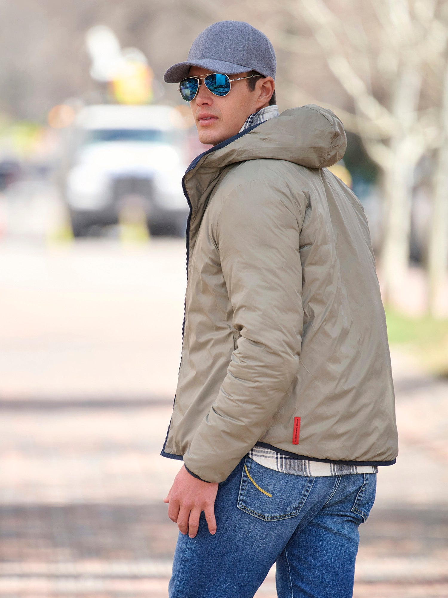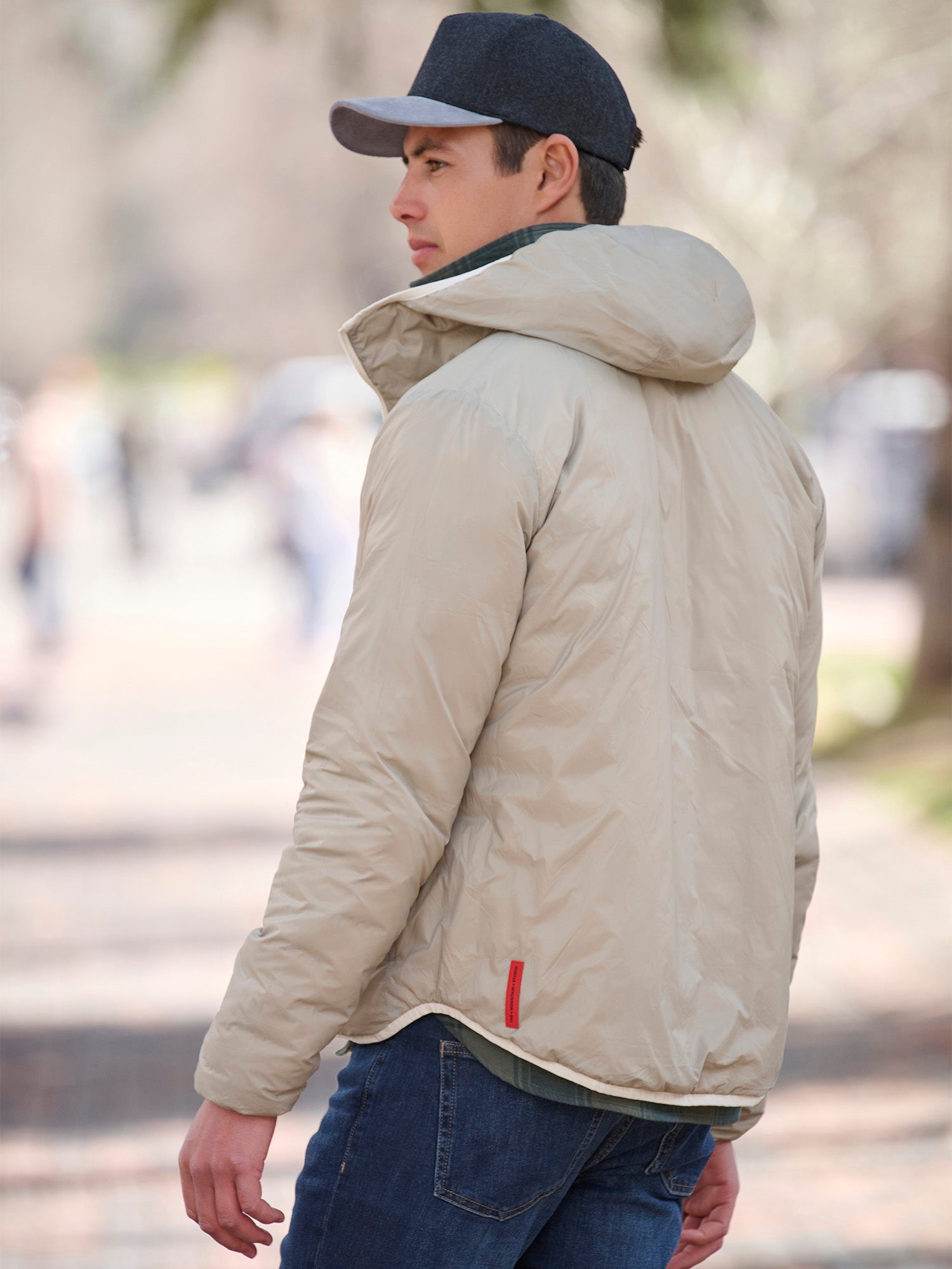 The D-3 R: Reversible Light Down Jacket by The Mountain Studio offers adaptable performance with a clean, modern look. Designed with overlapping down chambers to prevent heat loss, it delivers lightweight insulation and comfort in changing conditions. Fully reversible for versatile styling, it features a hood, practical pockets, and premium craftsmanship—making it an essential layer for warmth and style in every season.