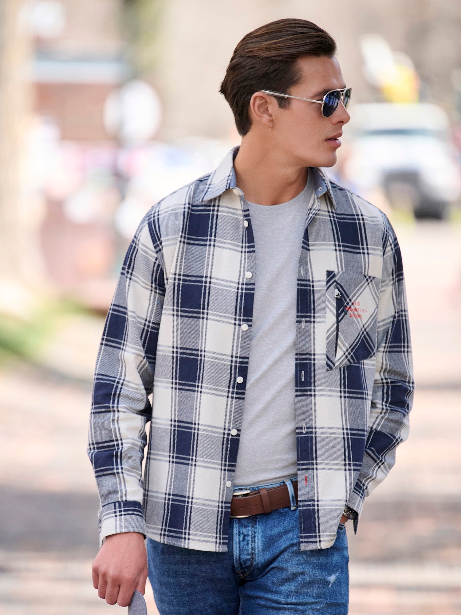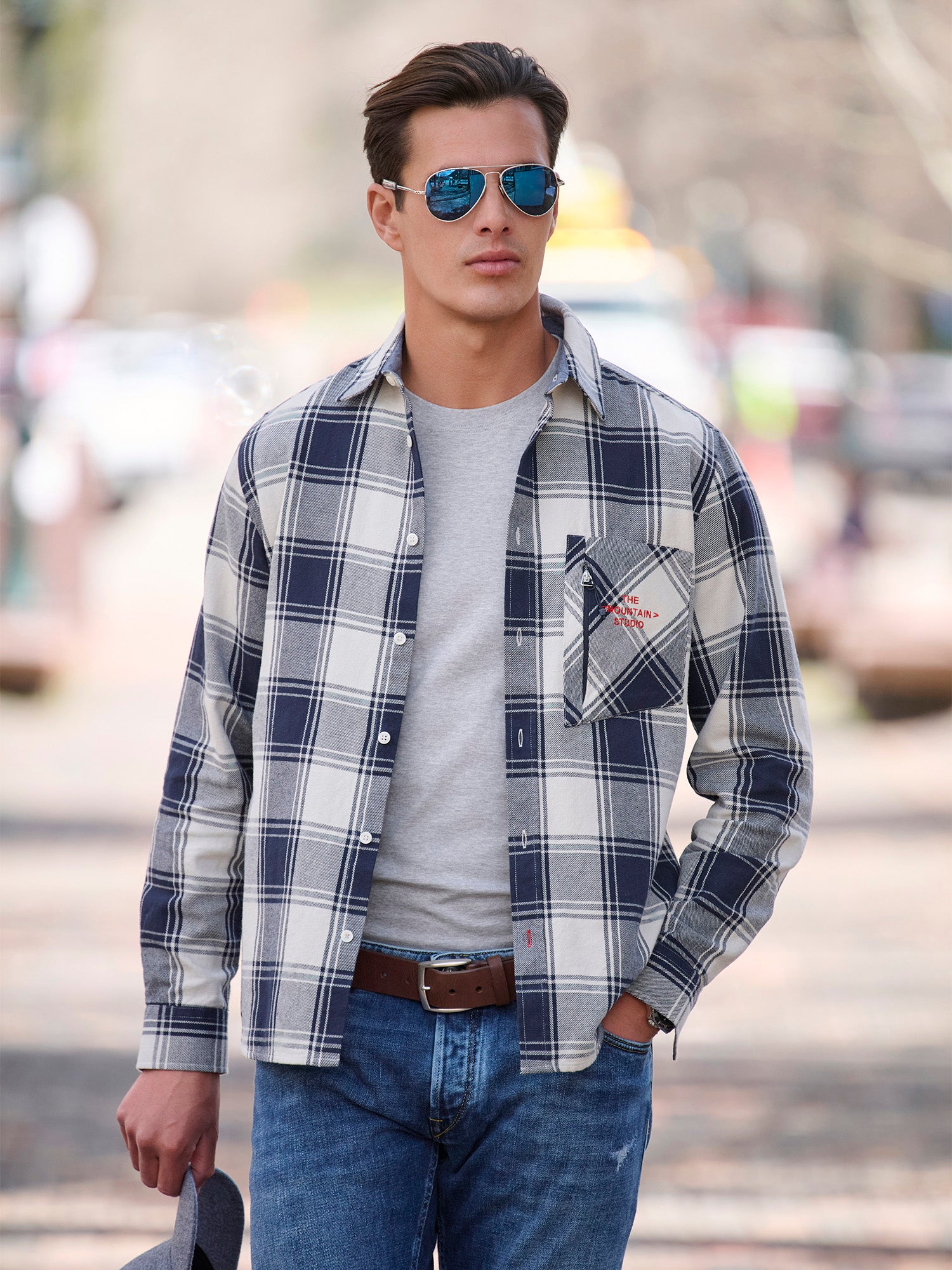The G-2 Flannel Overshirt by The Mountain Studio updates a classic with modern utility. Made from 100% organic cotton flannel, it’s washed for a subtly worn-in look and tailored with a dynamic fit that layers easily. A signature zip chest pocket with embroidered logo adds functional detail, while the bold plaid pattern keeps it versatile—equally suited as an everyday shirt or styled as an overshirt when sized up.