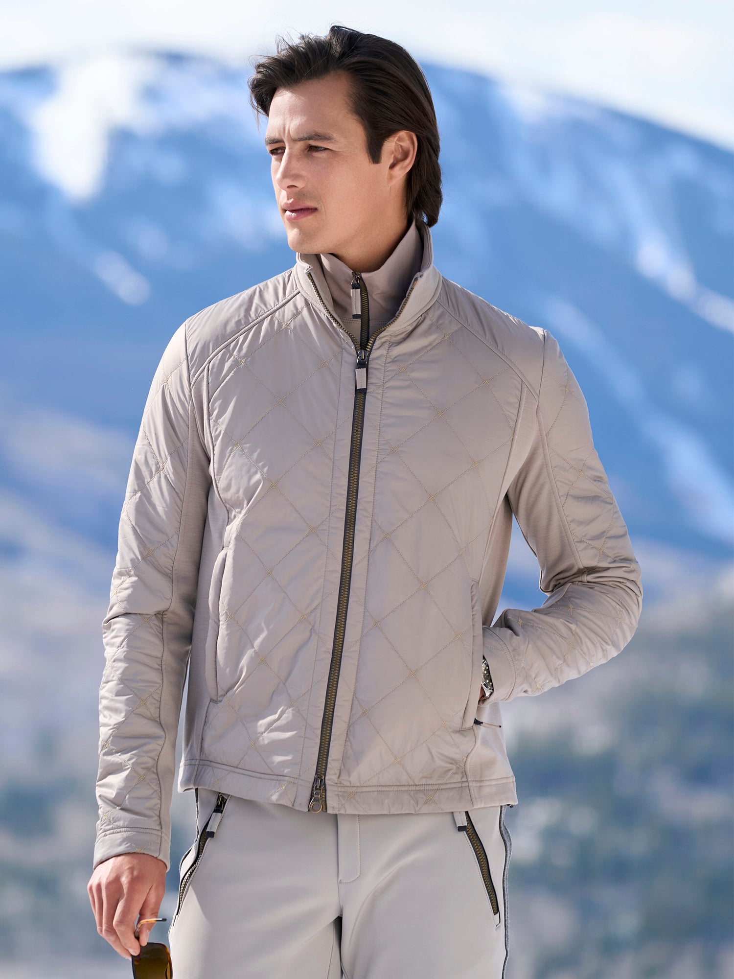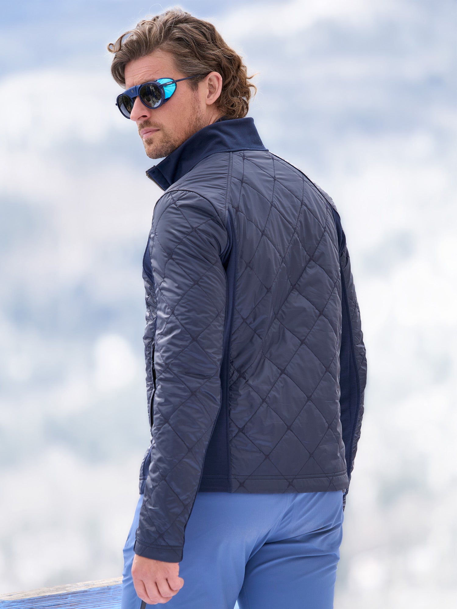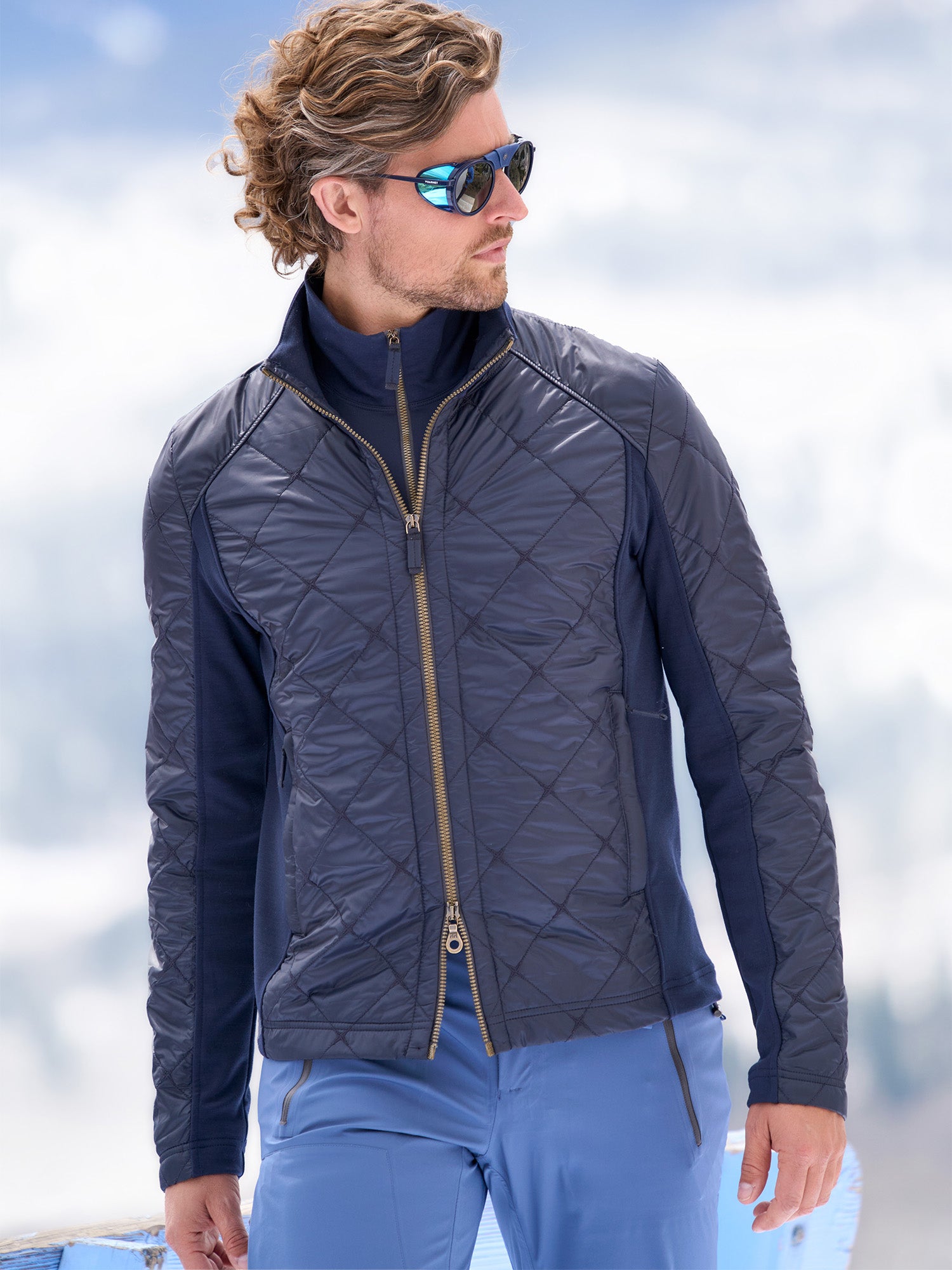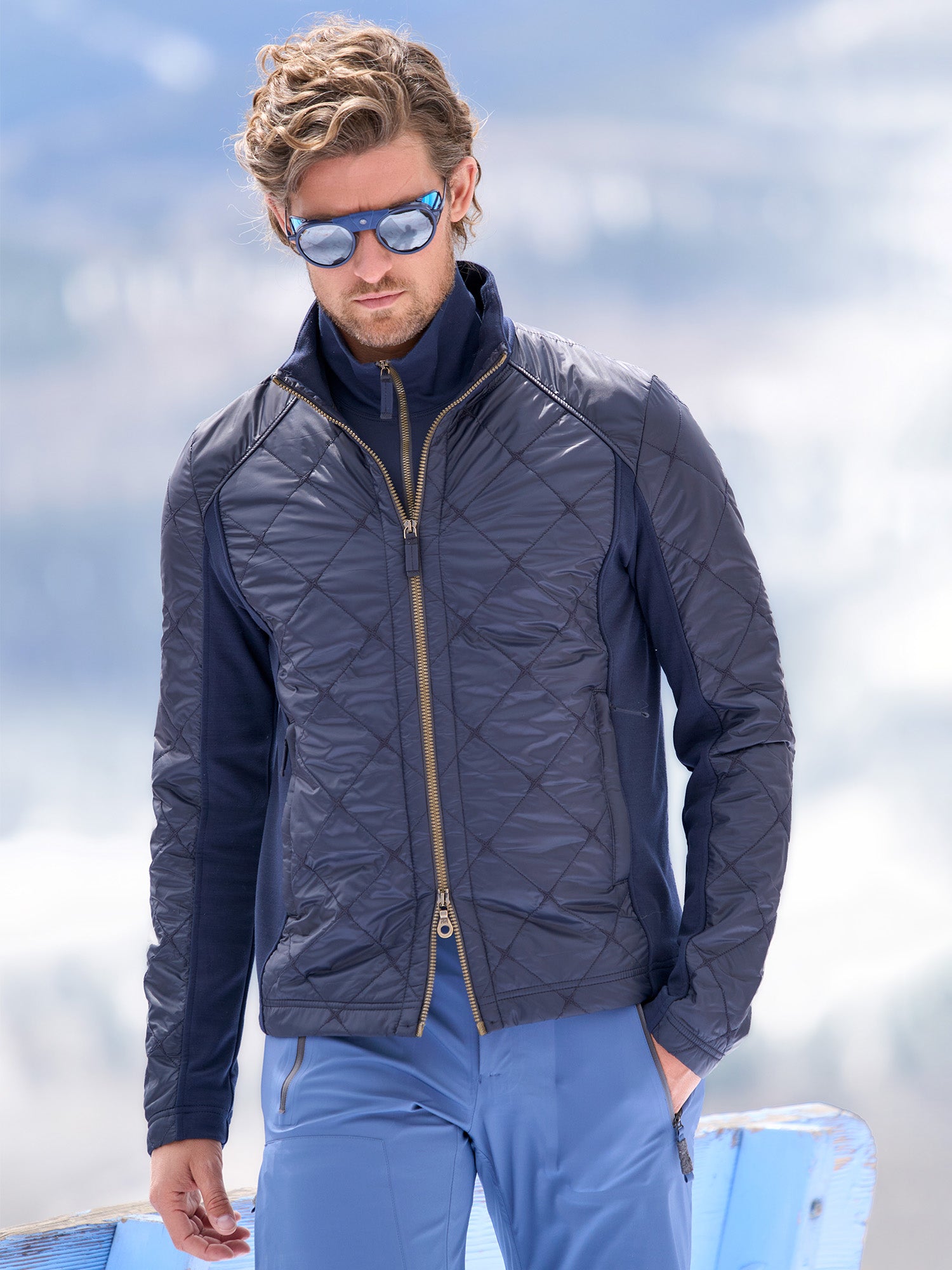 The Jakob Jacket is expertly crafted in Austria and features quilted nylon for warmth and stretch side panels and sleeves for ease of movement. Ideal as a midlayer for skiing or leisure, it offers both functionality and style.
