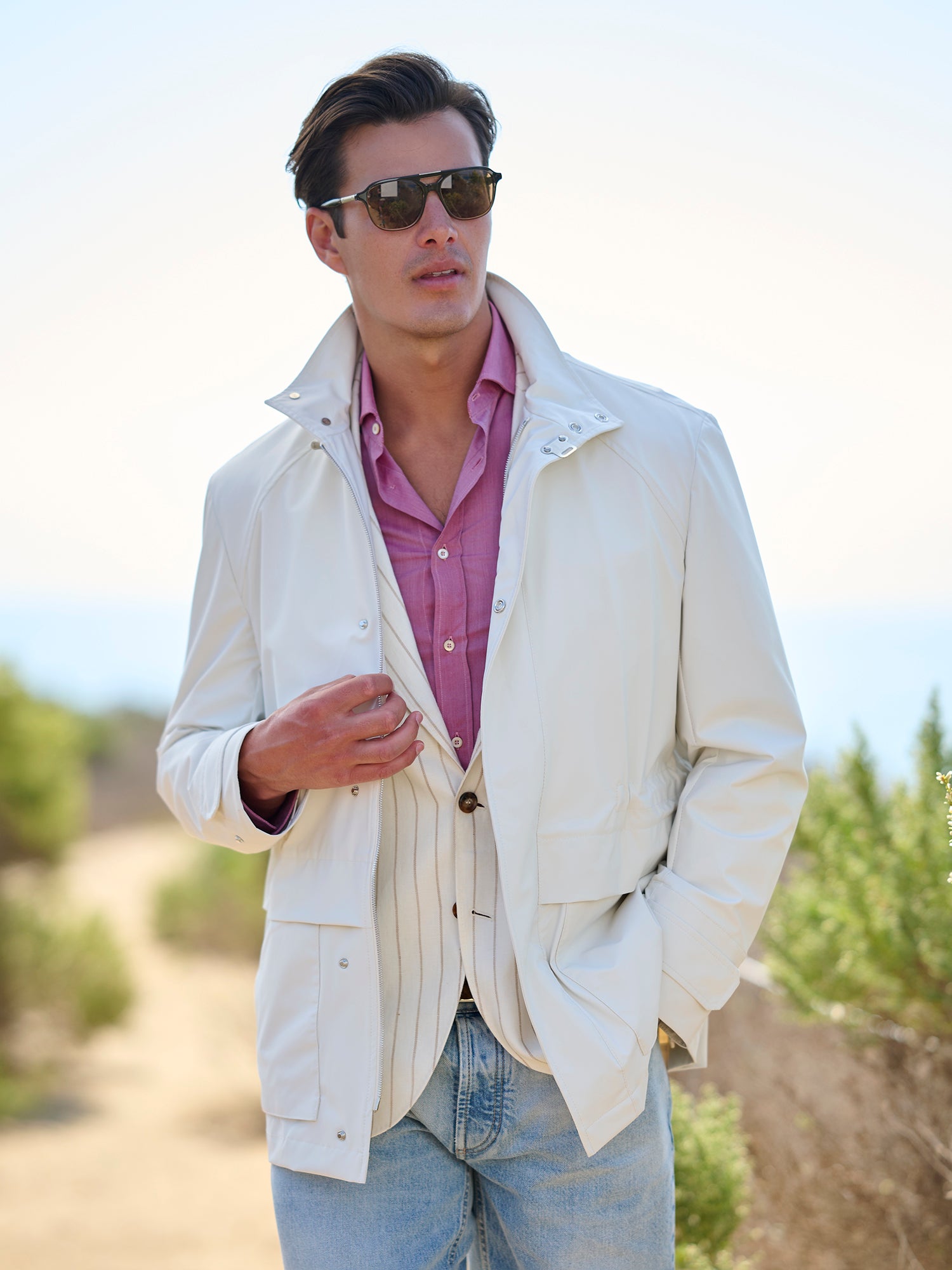 • three flap pockets, one welt pocket and one chest pocket