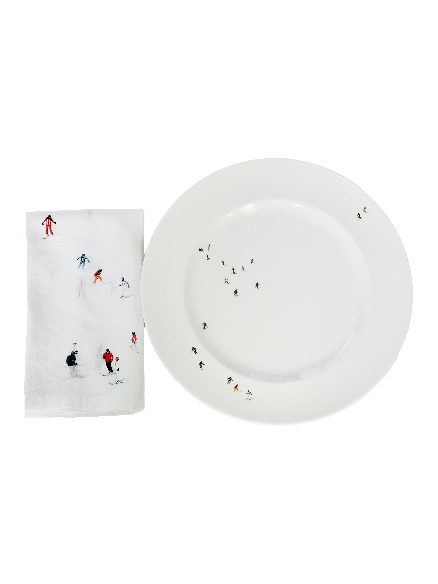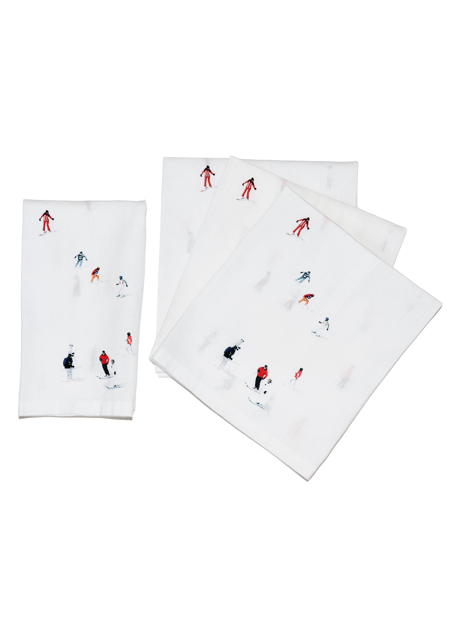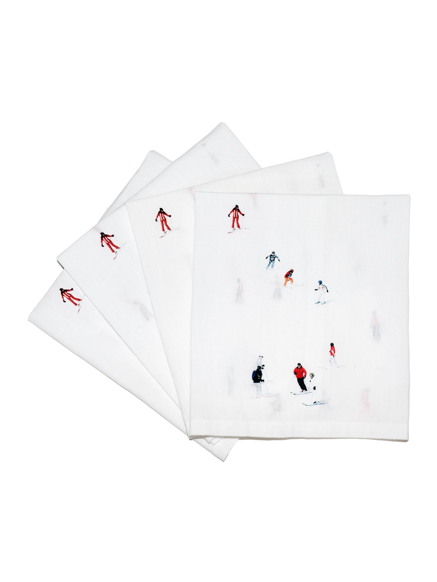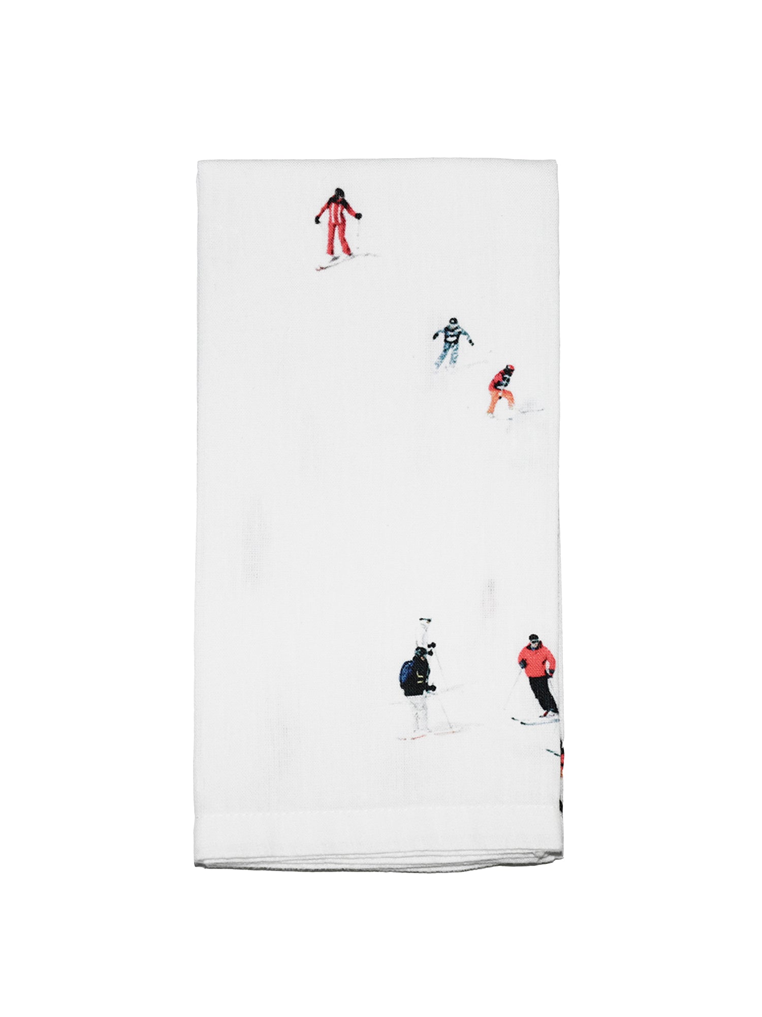 Printed linen napkin with imagery from Dede Johnston's "Crowded Slopes" photograph. Perfect to pair with Skiers China or your own favorite tableware settings.