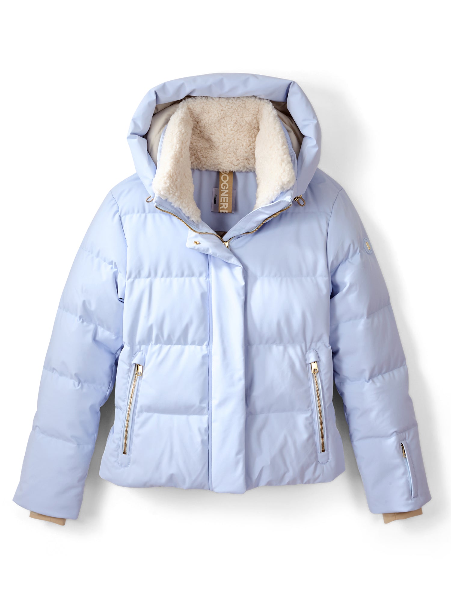Exclusively for Gorsuch, the Maja Tec Ski Jacket by Bogner brings a modern, fashion-forward edge to the alpine wardrobe. Tailored from four-way stretch fabric and insulated with down, it offers exceptional warmth and freedom of movement with a sleek, feminine fit. A detachable hood and teddy fleece-lined collar add a luxurious touch, while a powder skirt, jersey cuffs, and a two-way zip with snap placket ensure elegant protection on the slopes. Its cropped silhouette and gold-tone hardware introduce a bold new perspective on ski style—crafted for those who demand high-performance function with chic sophistication.
