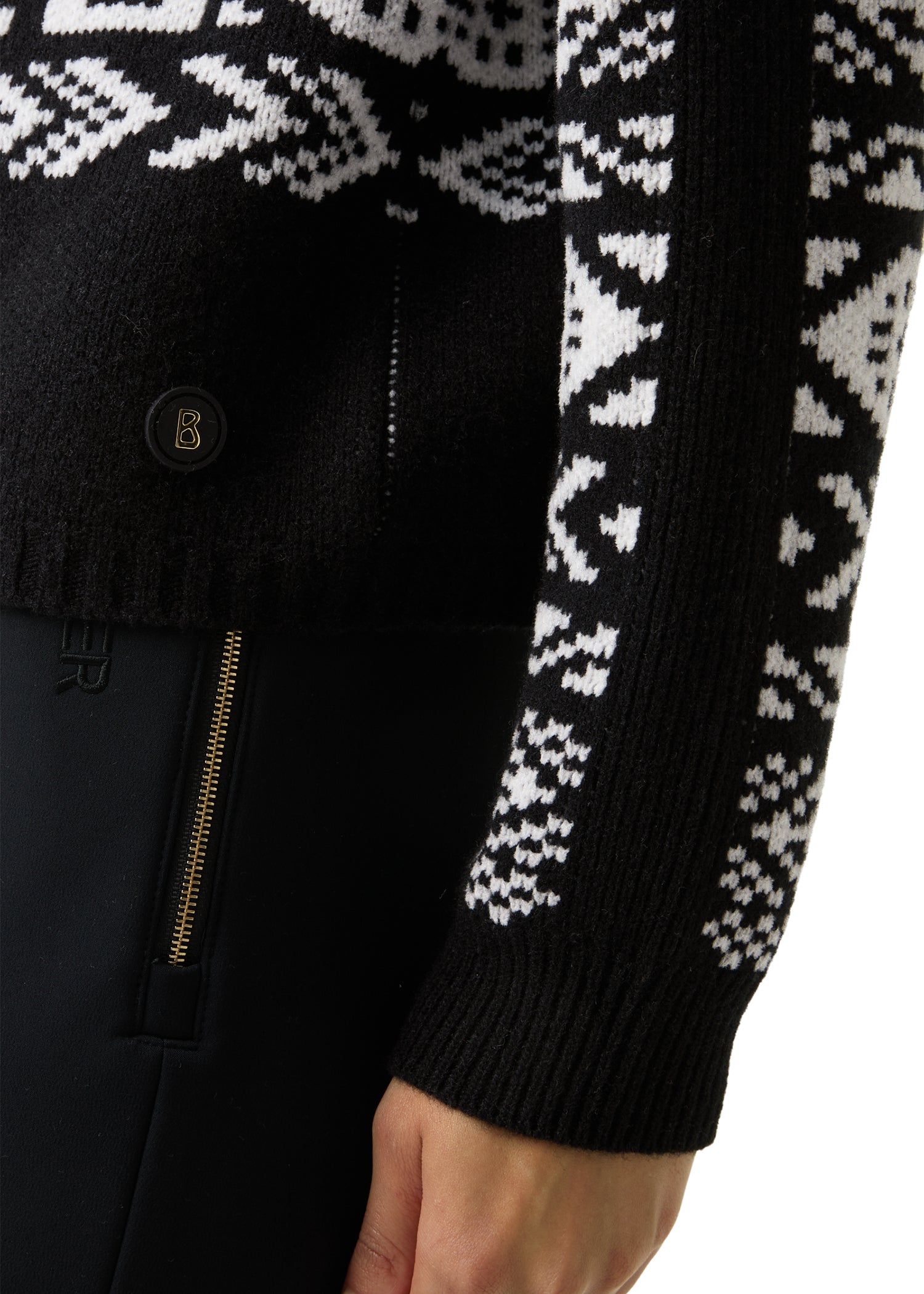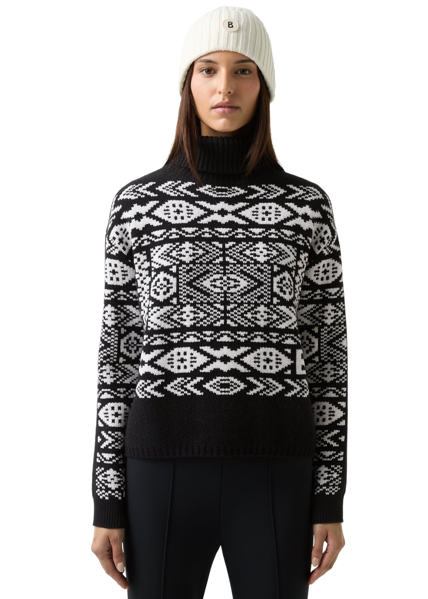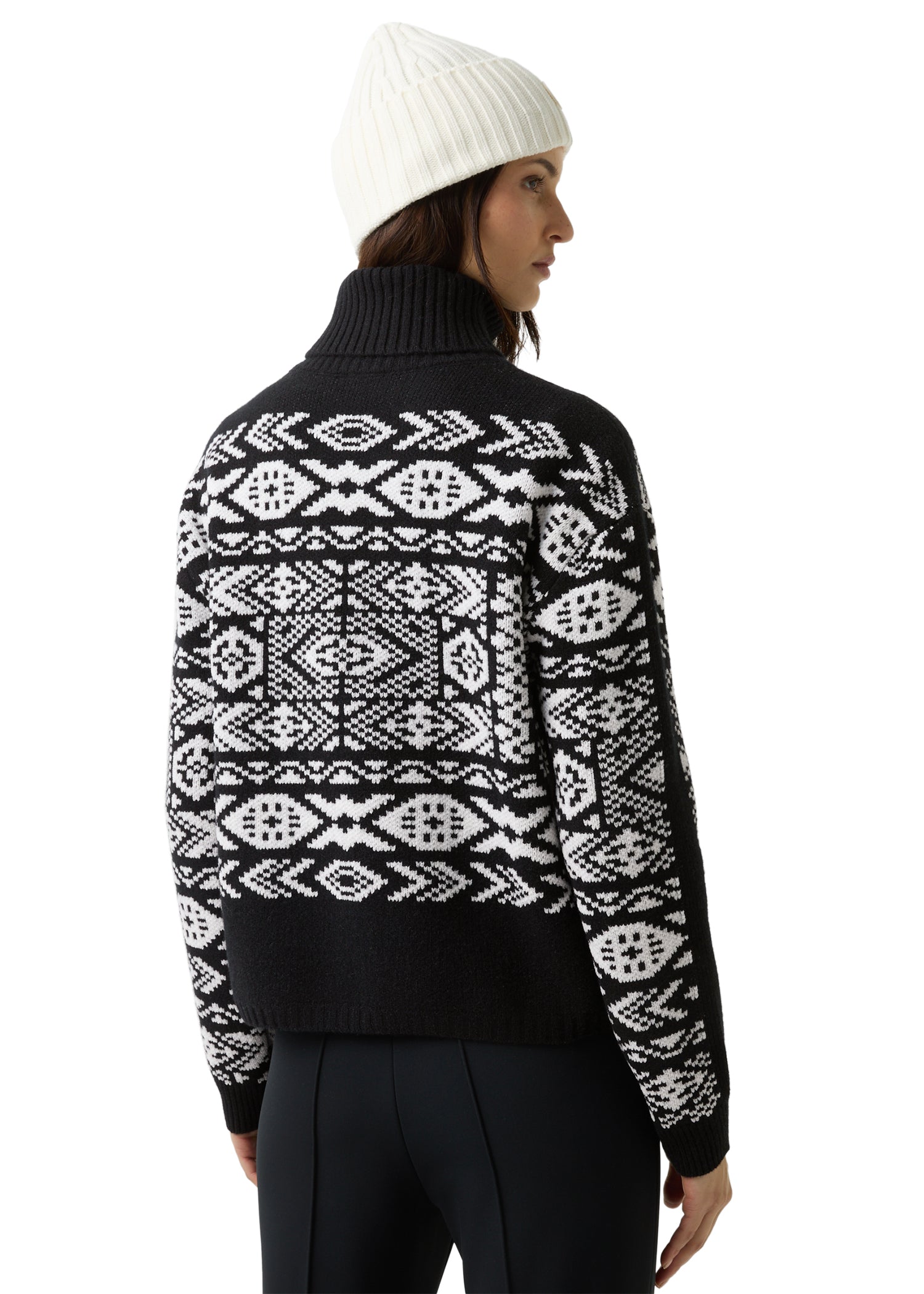 A modern nod to classic Nordic design, the Nadin Sweater from Bogner combines heritage-inspired patterning with effortless sophistication. Knit from extra-fine merino wool, this cozy turtleneck offers lightweight warmth and a soft, breathable feel. Its foldover ribbed collar, hem, and cuffs frame a relaxed, yet flattering silhouette, while the allover jacquard motif lends a graphic, alpine touch. Finished with subtle logo detailing, the Nadin Sweater transitions seamlessly from winter days on the mountain to evenings by the fire.