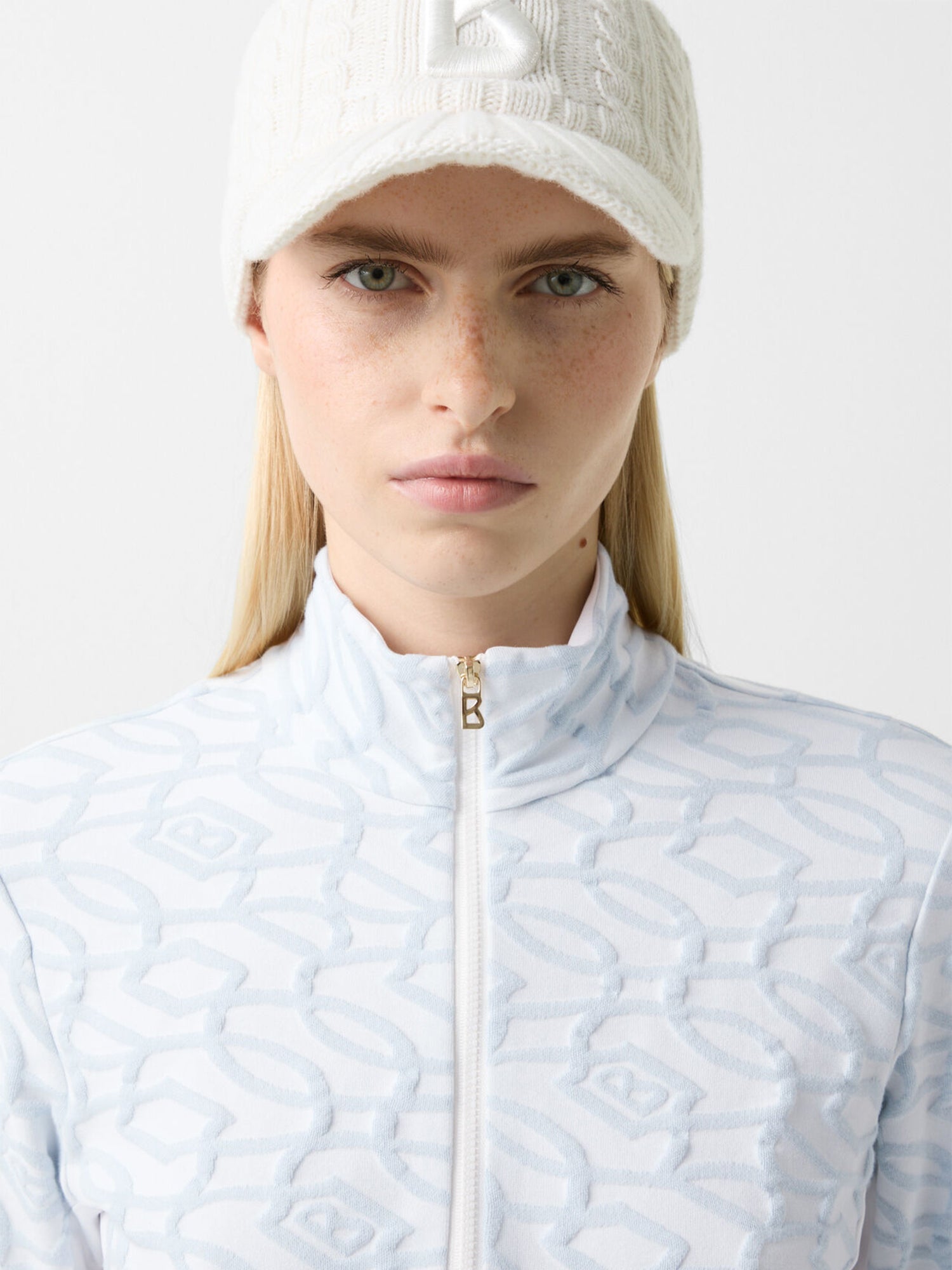 Elevated performance meets refined style in the Jasmina Jacquard Jersey Tec Turtleneck by Bogner. Crafted from breathable, quick-drying stretch jacquard jersey, this quarter‑zip base layer offers exceptional comfort and flexibility. The subtle jacquard pattern adds a sophisticated touch, while the signature logo zipper completes this sleek, technical essential.
