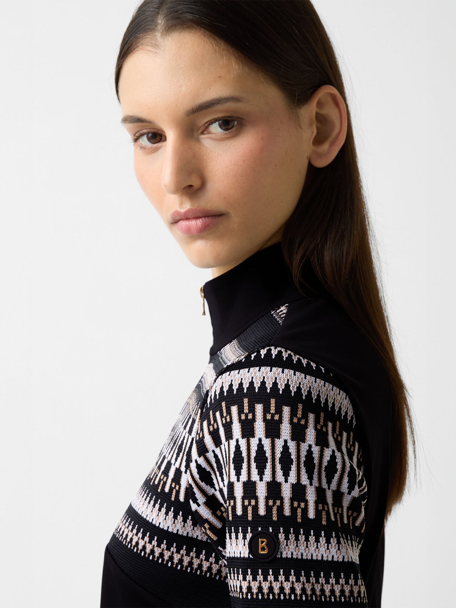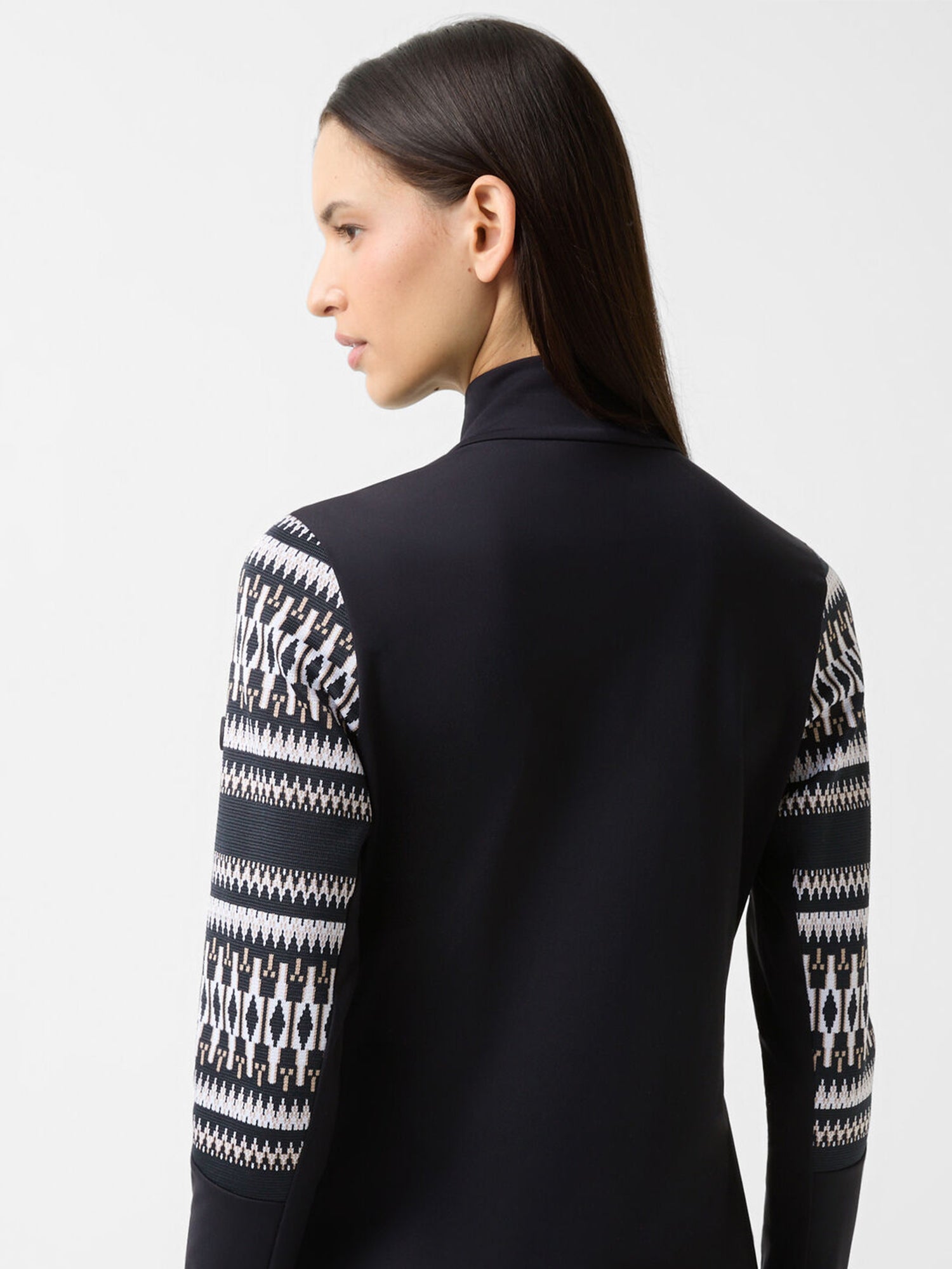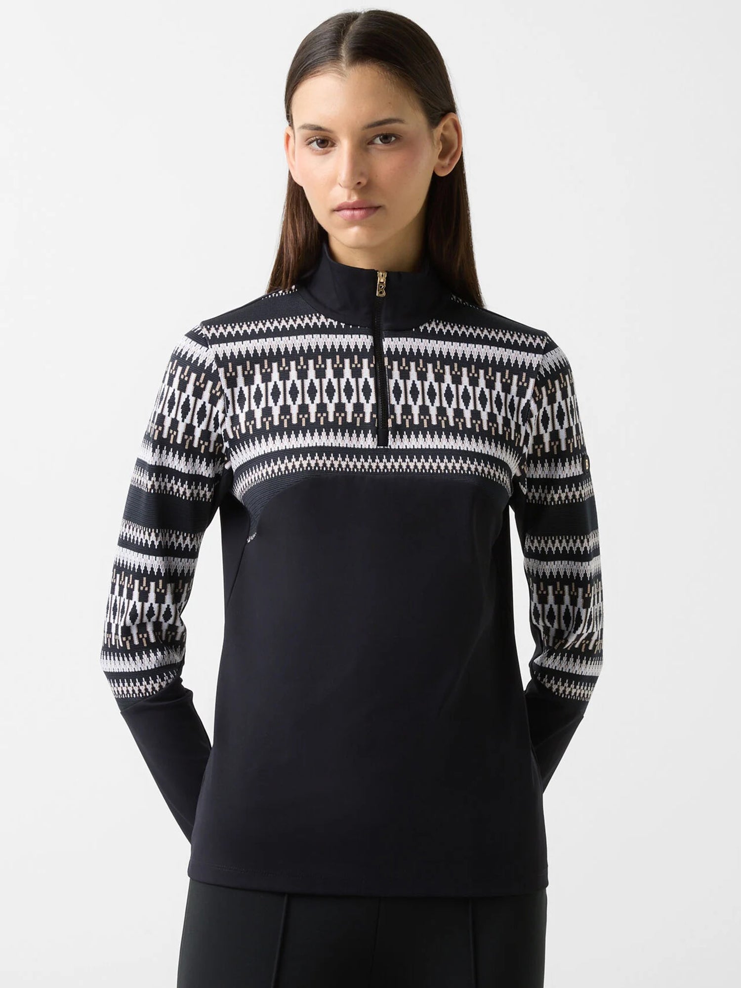 Striking and technical, the Jelissa Nordic Jersey Tec Turtleneck by Bogner delivers peak performance with a fashion‑forward edge. Crafted from breathable, quick‑drying stretch jersey, it offers exceptional comfort and mobility on the slopes. A dynamic Nordic‑inspired jacquard print and a quarter‑zip neckline with a signature logo pull add a bold, modern finish to this versatile base layer