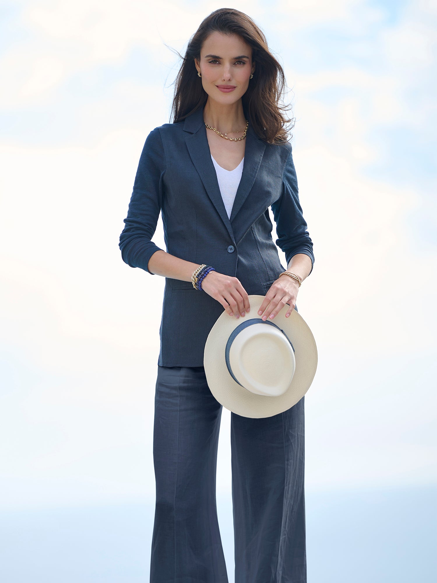 Expertly crafted in Italy by 100% Capri, these linen pants feature tailored pleats and a concealed zip and hook front closure for a sleek and polished look. The slightly flared leg provides a flattering silhouette, making them a staple in any warm-weather wardrobe.