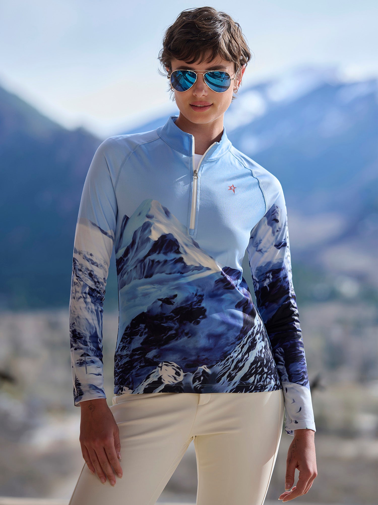 This Polar Flare Jacket captures the spirit of alpine adventure in a dynamic mountain-scape print. Crafted from high-performance, down-insulated nylon, it offers warmth and lightness with a sleek edge. A high collar and helmet-compatible hood frame the face, while flared sleeves, ribbed cuffs, and a sculpted fit add a chic finish. Designed to impress from the first run to après-ski, this jacket blends technical precision with bold style.