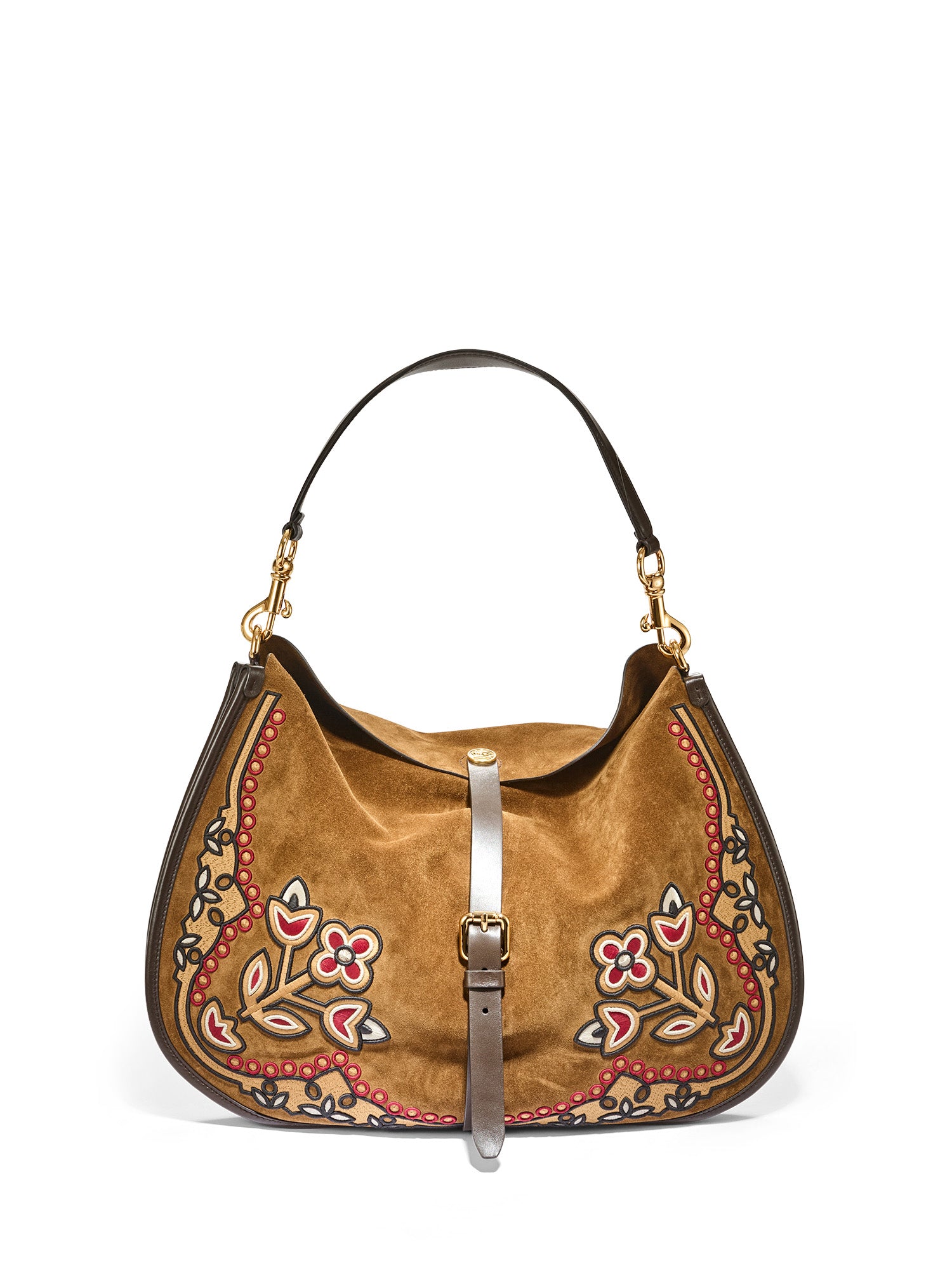 Soft suede and beautifully stitched florals define Etro’s Embroidered Suede Pony Bag, creating a warm, expressive accessory with a refined, textural appeal.
