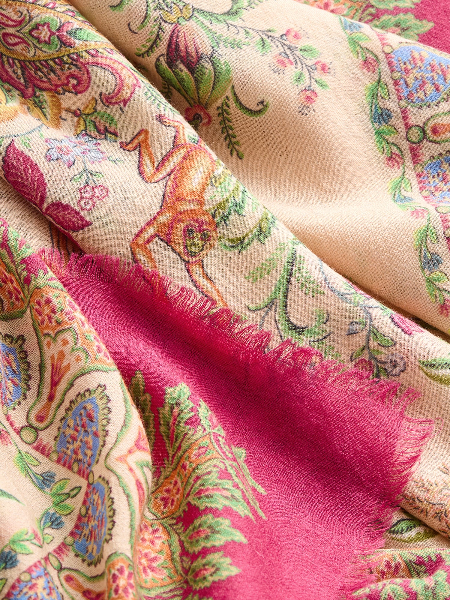 With its vivid fuchsia border and botanical artwork, the Adella Shawl by Etro delivers a statement of color and pattern that creates a bright, contemporary accent for spring.