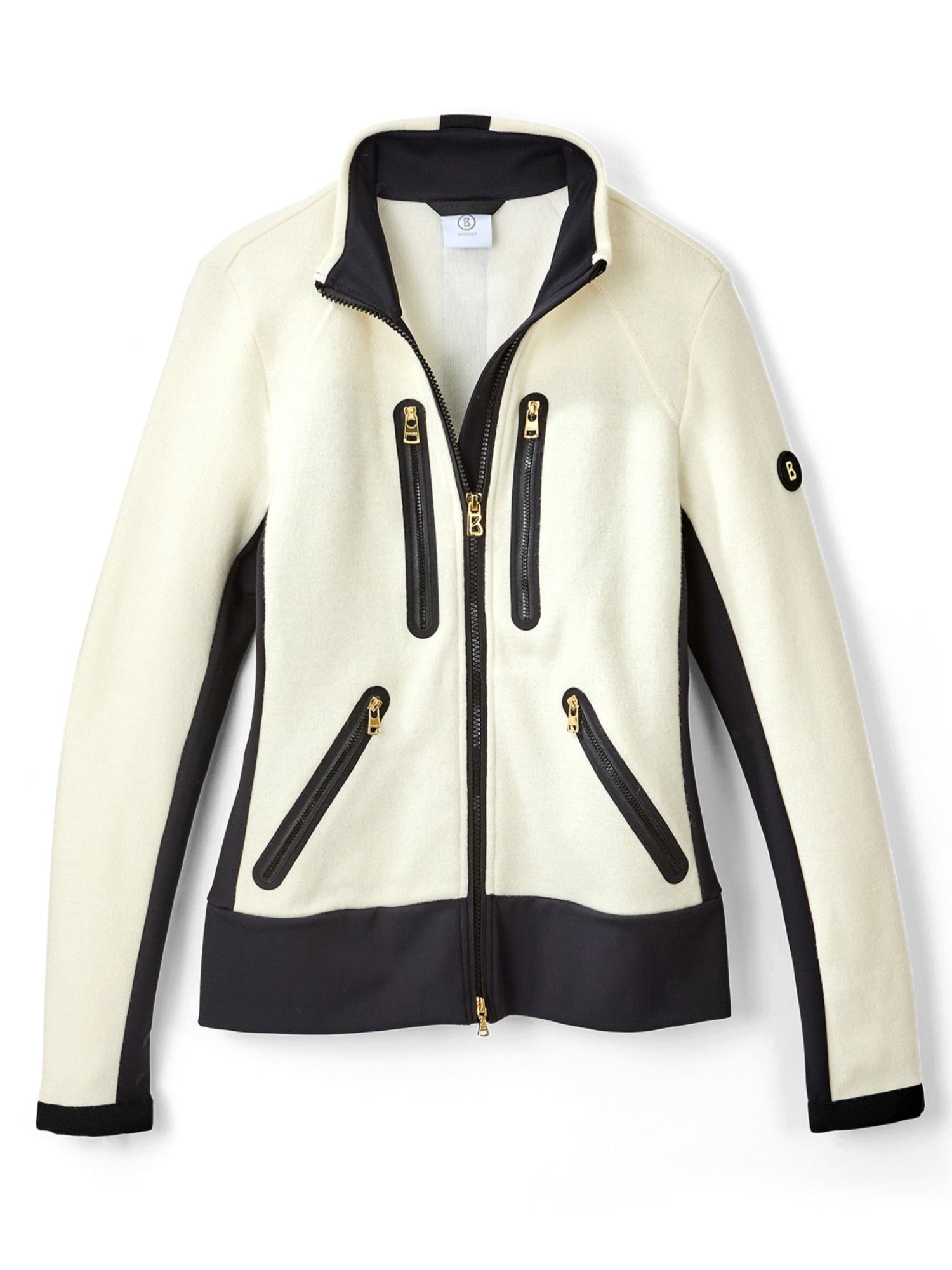 The Charlot Wool Midlayer Jacket by Bogner merges technical performance with timeless style. Crafted from soft, breathable techno-wool, it delivers natural warmth and comfort. A two-way front zipper, zippered hand and chest pockets, and elastic cuffs with a double-layered hem create a sleek, functional silhouette ideal for effortless layering.