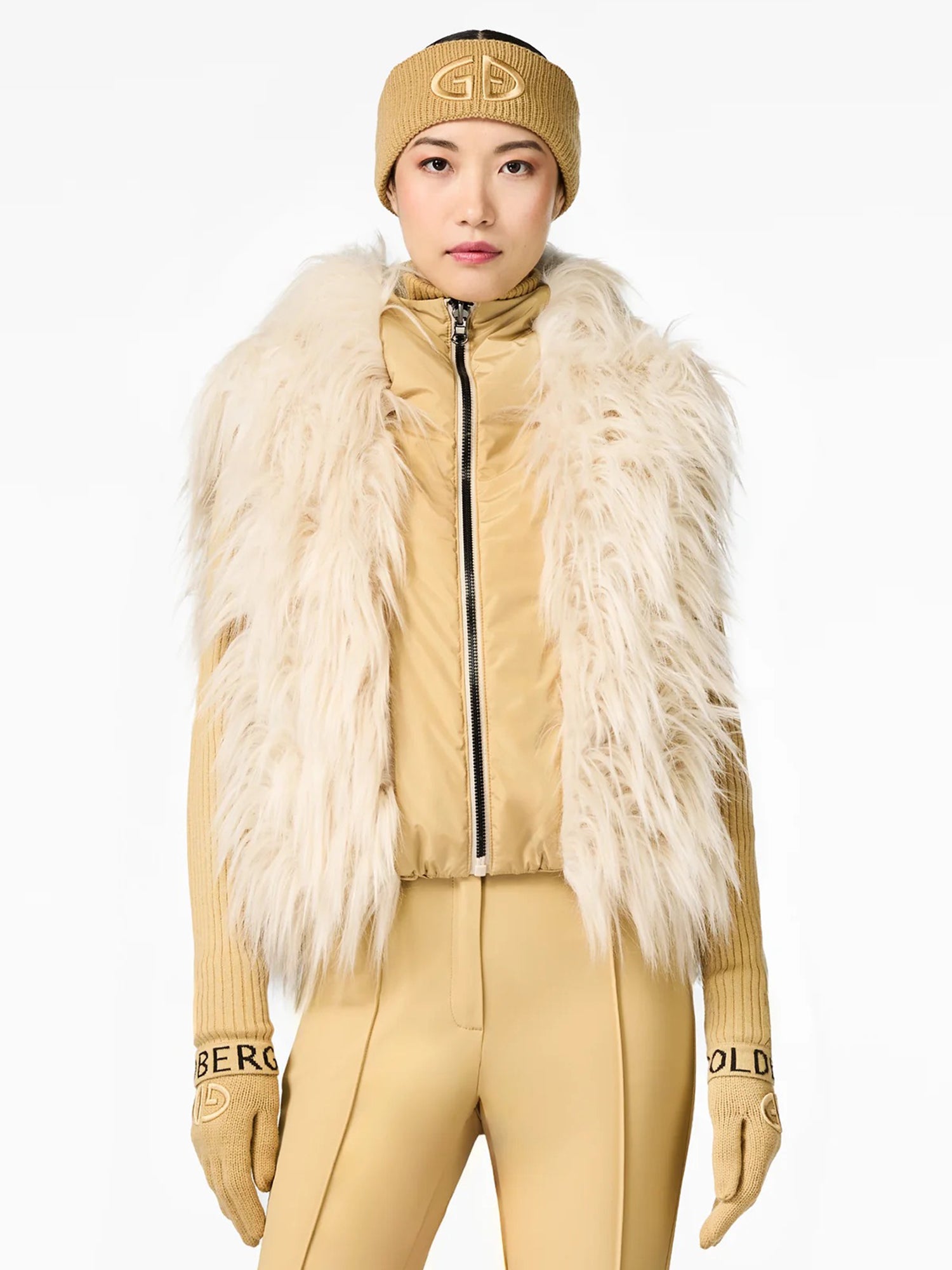Sophisticated yet wild, the Yara Reversible Faux Fur Vest by Goldbergh blends sporty performance with adventurous style. Designed with a recycled shell and insulated with PrimaLoft® for lightweight warmth, it reverses from a sleek, technical finish to plush faux fur for two stylish looks in one. A drawcord hood with a zip detail at the back and dual sets of pockets enhance its practicality, making it a statement piece for the mountains and beyond.