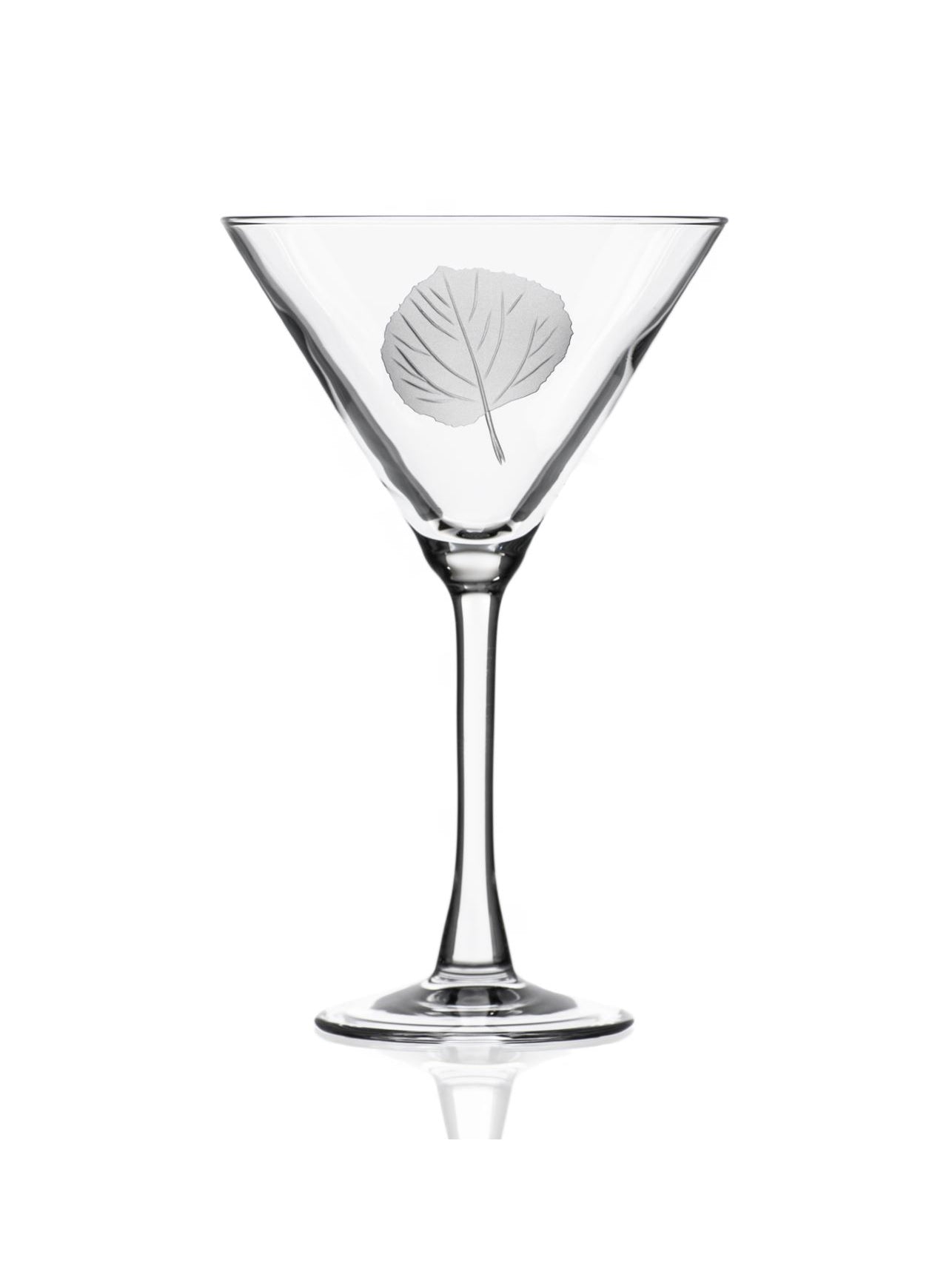 The flat heart shaped leaf of the Aspen tree symbolizes protection and the process of overcoming our fears. Aspen trees grow together in the wild and forma grove near streams, or rivers. Quench your thirst and bring the great outdoors to the table all year round with this exquisite engraved Aspen Leaf Martini.