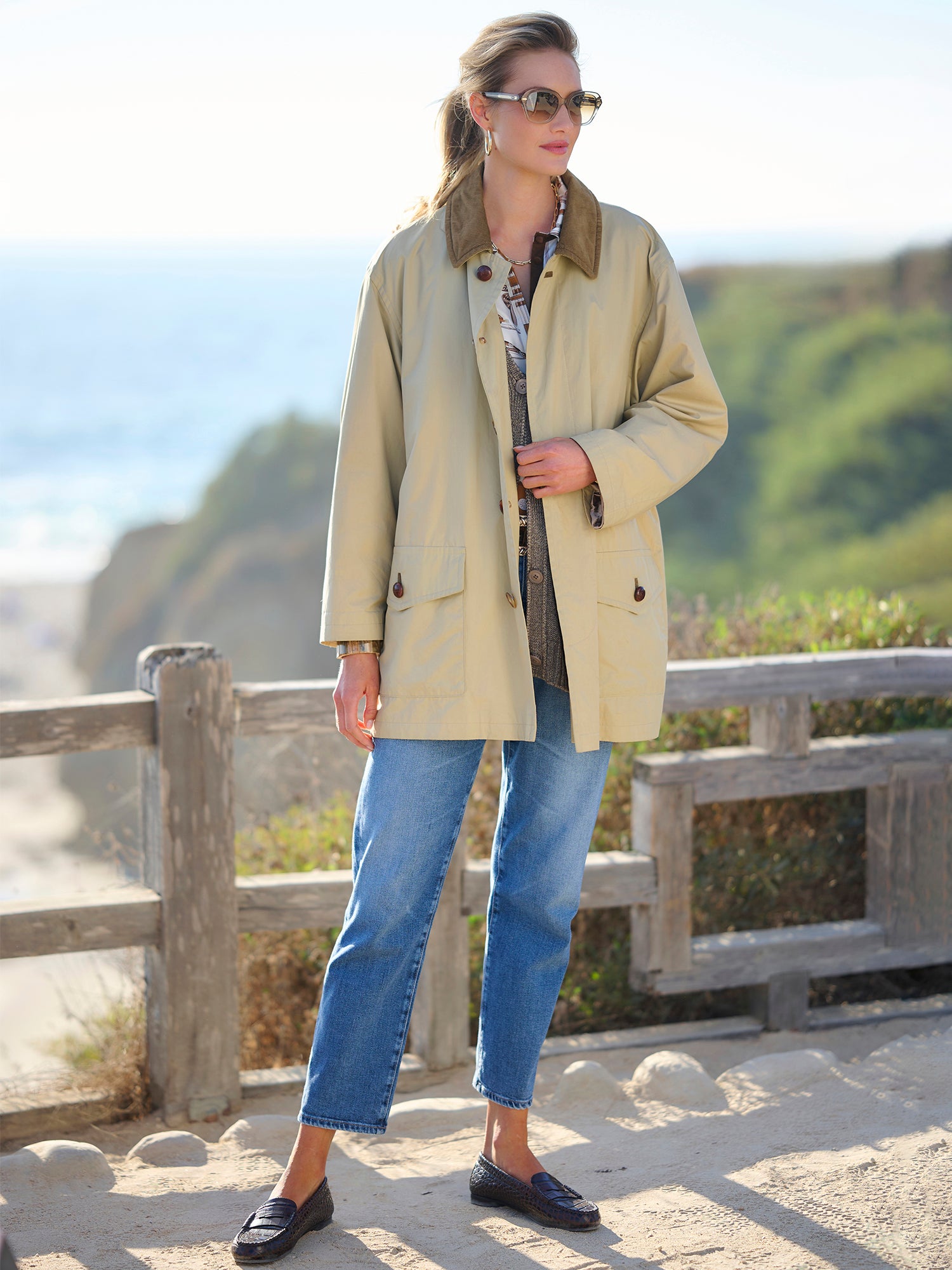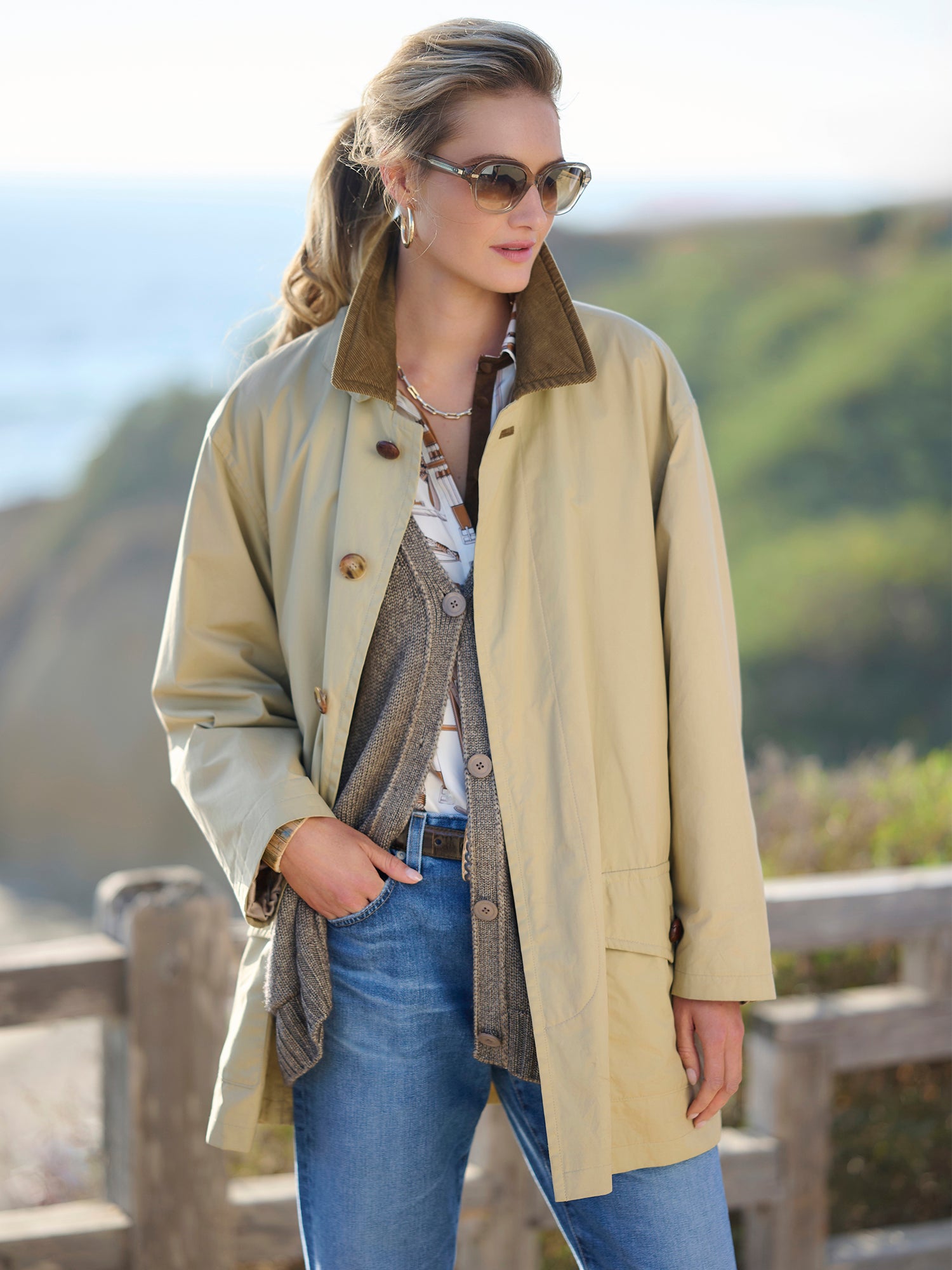 The Billie Barn Coat is an ideal choice for chilly spring days. Made in Germany, this lightweight cotton coat combines functional design with timeless style. A contrasting corduroy collar lends vintage charm, while the satin lining and leather buttons add a touch of sophistication.