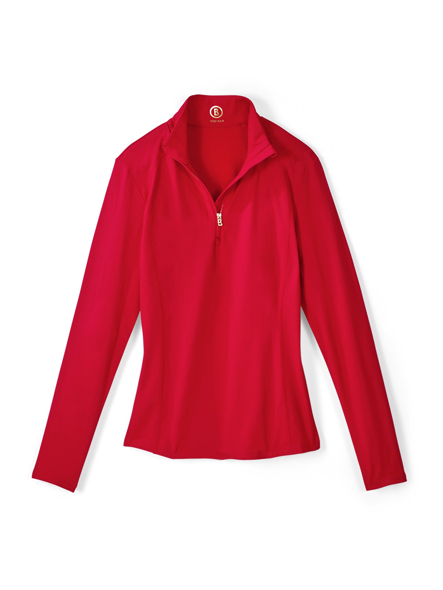• close-fitting stand-up collar with 1/4 zip and chin guard