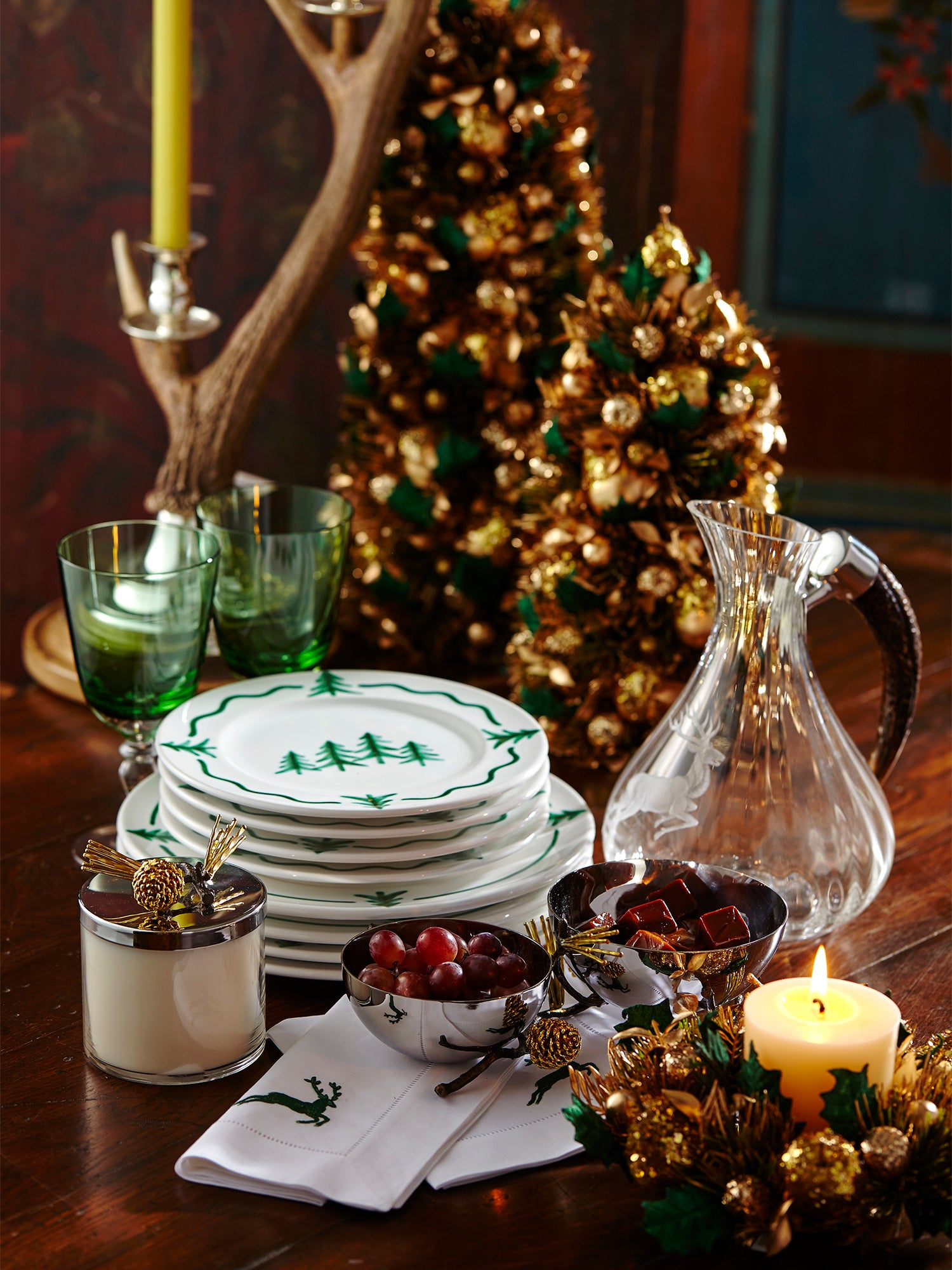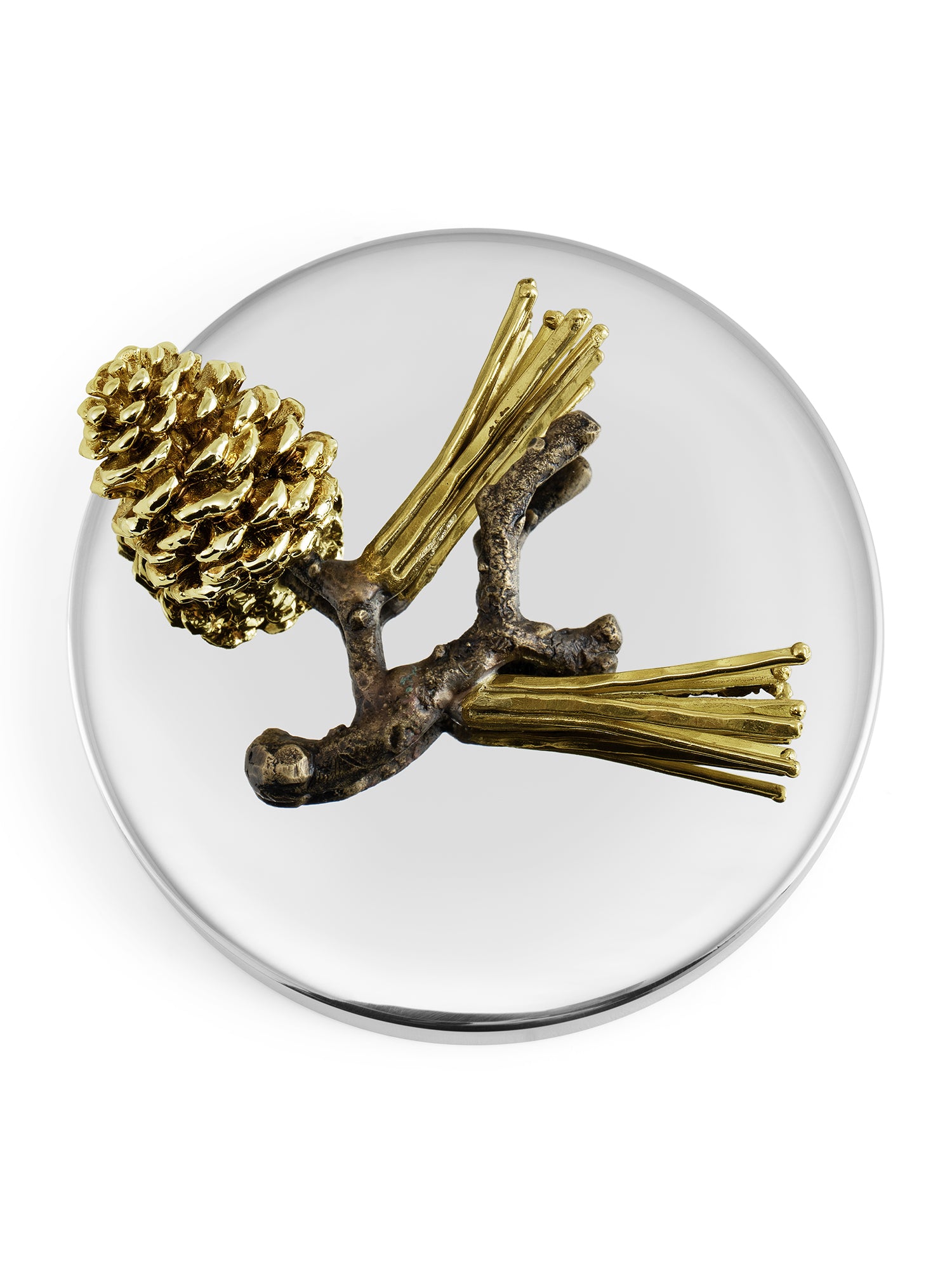 The Pine Cone Collection, with its antique gold and darkened bronze patinas, celebrates the glow and warmth of the holiday season.