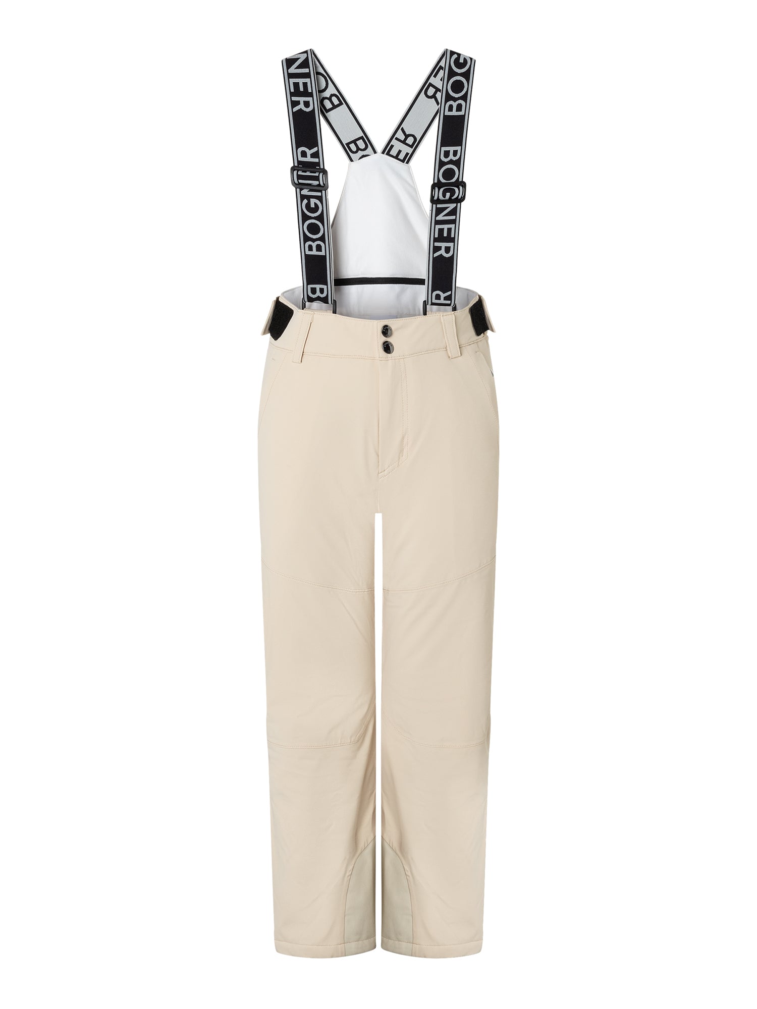 • zip-on bib at the back, with adjustable stretchy suspenders in logo design